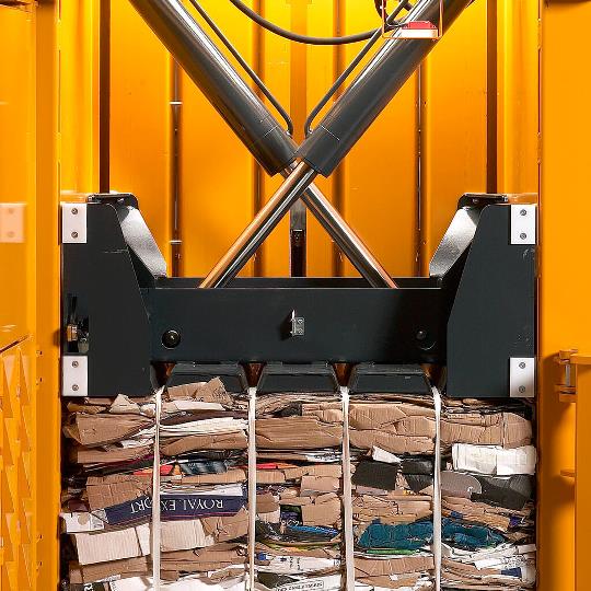 - Fyll ditt plast- eller pappavfall i emballasjepressen.